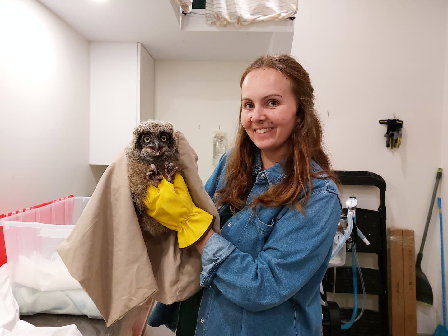 She loves animals of all kinds, but has a special interest in otters and raptors, with eagles being her favourite. She enjoys travelling, especially with the prospects of volunteering and visiting other wildlife rescue centres, including centres in BC, Alberta, Texas, and Costa Rica.
